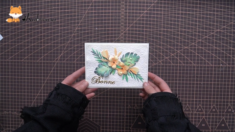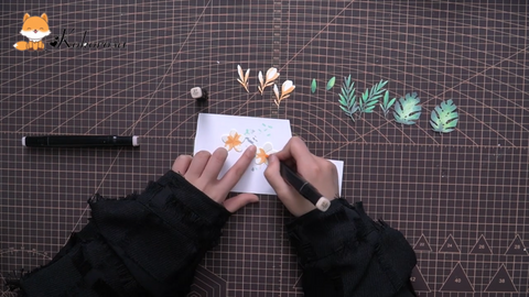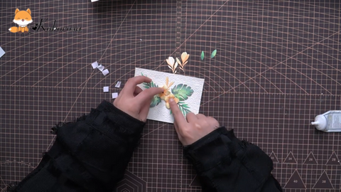 Step 5: Use liquid glue to combine the corresponding parts on your printed cardstock, if it's a botanical cutting die, I recommend putting the flowers in the middle of the card and the green leaves around it. I made the flowers with the petals curled a little bit on purpose. This is to imitate the shape of the real petals.
