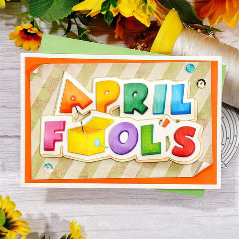 The Kokorosa Metal Cutting Dies with "April Fools" Word was designed a few days ago to show off the cartoon feel, so the "o" in "fool" was replaced with a scare box. The "o" in "fool" was replaced with a scare box. Children are not usually likely to play big jokes or big tricks on each other, so a card like this will add to the friendship and fun of the children. We will be releasing more life dies for April Fool's Day, so look out for that too.