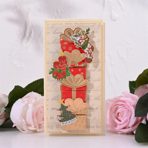 Use Santa's most classic red and white color scheme. Or maybe we could use a gold and green color scheme which just look like a Christmas tree with golden bells are also great. If you are fond of receiving gifts, you can also use some gift box-cutting dies to make some small cards and put them under the Christmas tree.