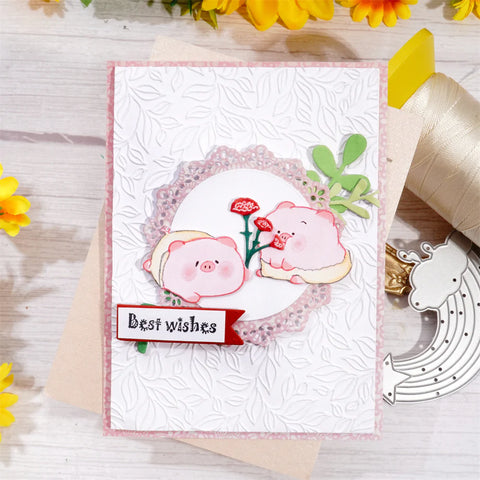 Lastly, I bring you the Kokorosa Metal Cutting Dies With Lovely Pink Pigs, which is also very interesting because we find that when we eat too much calorie food we turn into little pigs. But look at this card, the pigs are pretty cute too, aren't they?