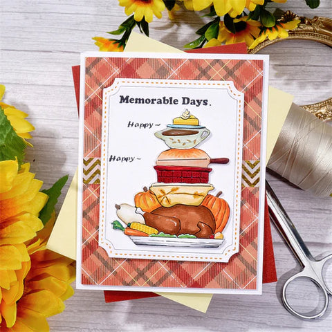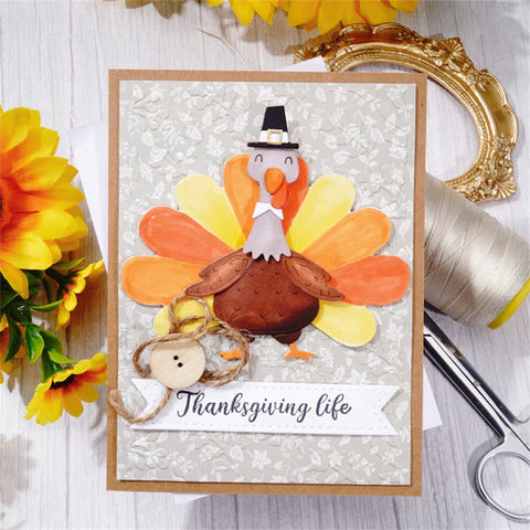 The first card is a happy turkey, we can use turkey dies to make a horizontal or vertical card. For the background of the card, we can choose something with the atmosphere of the autumn harvest and add some holiday wishes about Thanksgiving next to the turkey. Receiving such a card will make people happy.