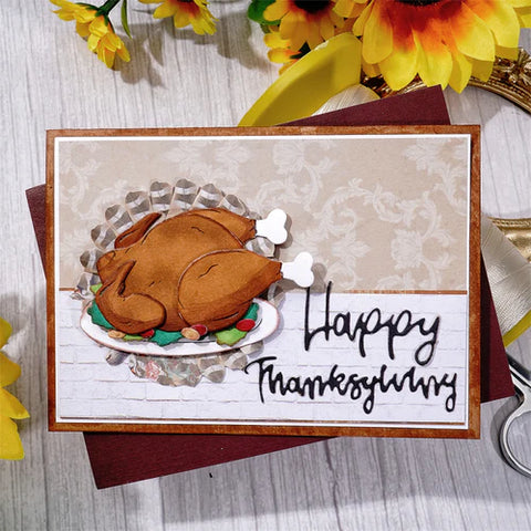 With a sizzling roast chicken in the card, the person receiving the card will feel like they are already sitting at the Thanksgiving dinner table. Again, for the background, we can use leaves or other plants that match the autumn atmosphere. But the difference with the live turkey card is that the roast chicken card can include a table as a reference element. After all, you have to put the roast chicken on the table.