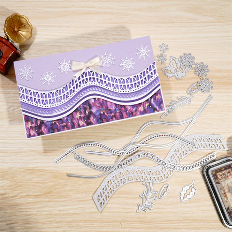 The first one I'll show you is the Lace Wave Border Cutting Die, which is a set of border dies. In addition to the lace border, it also contains botanical decorations for spring and autumn and snowflake decorations for winter, so it's a versatile die that can be used for any card in any scene, and you can easily use it to make a very beautiful card.