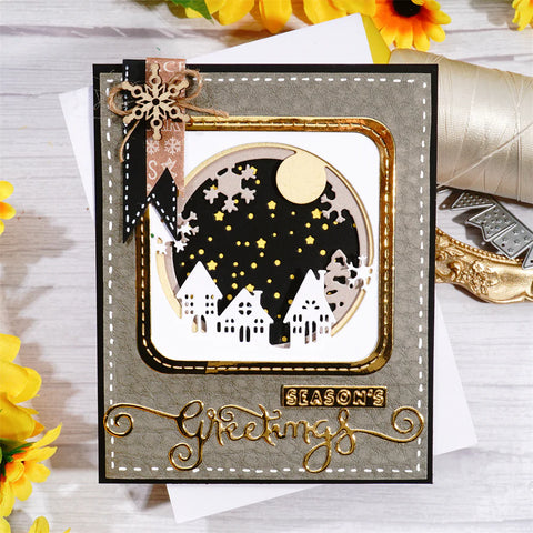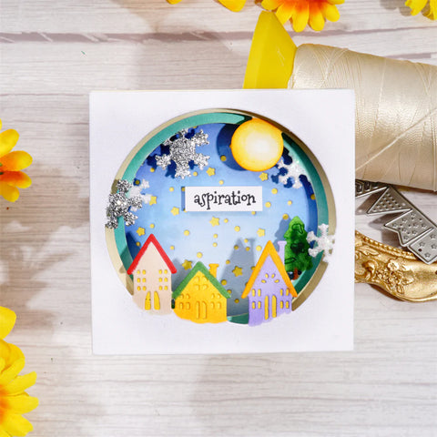 The first is the Kokorosa Metal Cutting Dies with 3Pcs Layered Palace Towers, a very unique card that looks like a Byzantine palace in its outline, and with its three layers, we can even get a very grand palace complex when the three layers are combined. On a winter's day like this, we can decorate this magnificThis way, a beautiful card is created. Using 3D laminated accent buildings with a few crystalline snowflakes above them. Card like this is one of the easiest ways I can think of to make a card, just cut out the corresponding die from cardstock using a cutting die machine and put it all together to make a card that will “wow” everyone around you.
