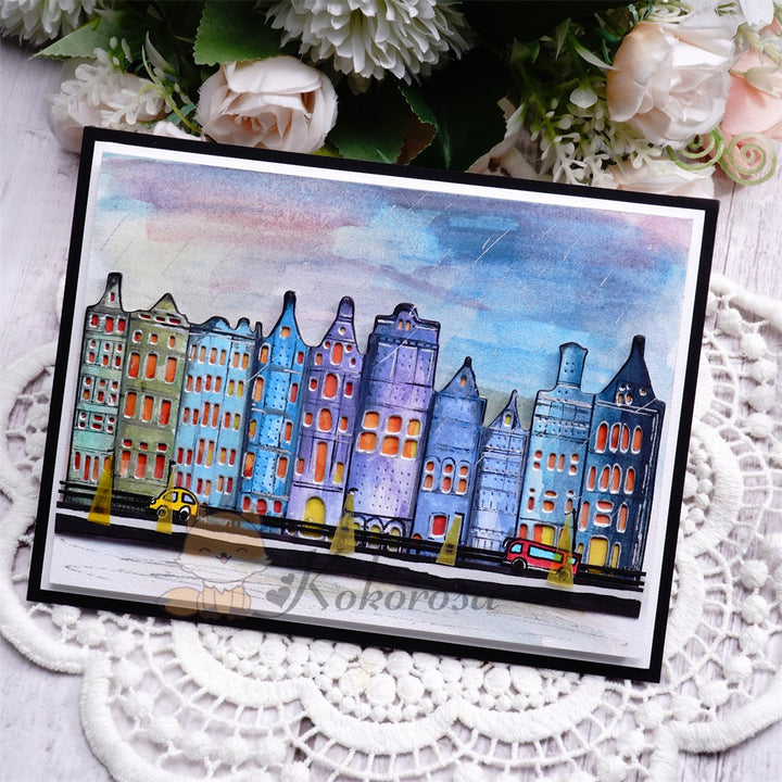 Kokorosa Metal Cutting Dies with Rows of Houses Border