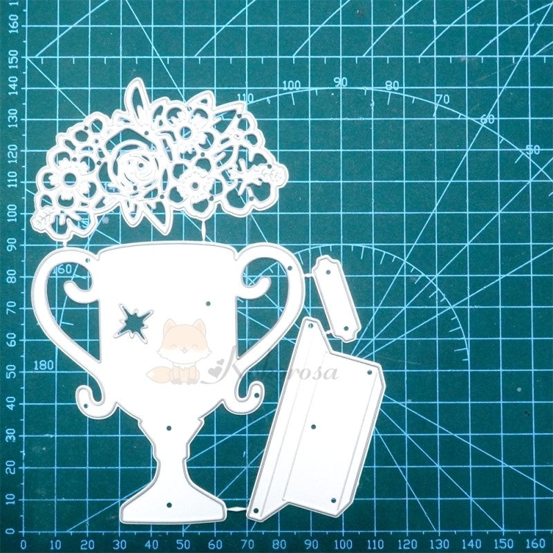 - Product design: This is a metal cutting die for decoration. This is the Trophy & Flowers cutting die. This metal cutting die will help you make exquisite and beautiful greeting cards, scrapbooks, and other handmade crafts.