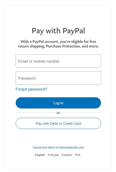 Payment is traceable. You can trace the status of your payment using your PayPal account.Payment does not require you to use your credit card online (you can transfer directly from your bank account). Kokorosastudio doesn’t receive your credit card number (it is safely encrypted through PayPal's server), which limits the risk of unauthorized use.